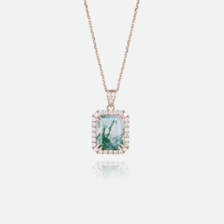 What makes moss agate particularly compelling in contemporary pieces is its ability to stand alone or blend seamlessly with other stones and metals. You’ll often find it set in warm gold for an earthy elegance or paired with silver for a modern, grounded look. And because no two stones are ever alike, each moss agate pendant feels entirely personal—a one-of-a-kind creation that resonates with the wearer.