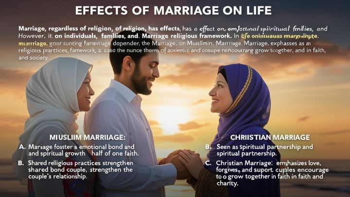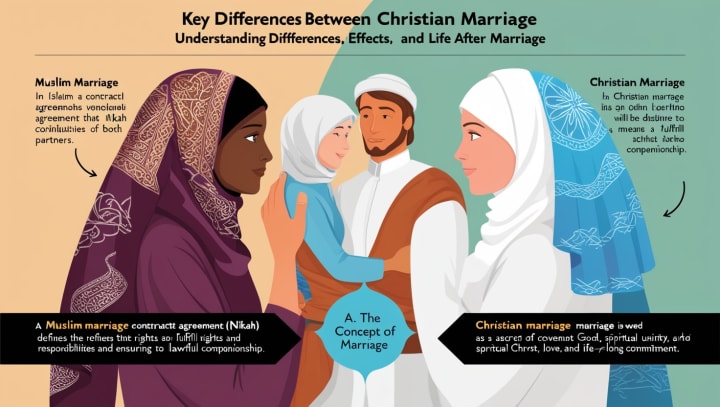 Marriage is a great pillar of human society irrespective of cultural or religious borders. However, the practice, principles, and effects of marriage vary among religions. Here, differences between “Muslim” and “Christian” “marriages” will be discussed, along with impacts on individuals and families and life after marriage.