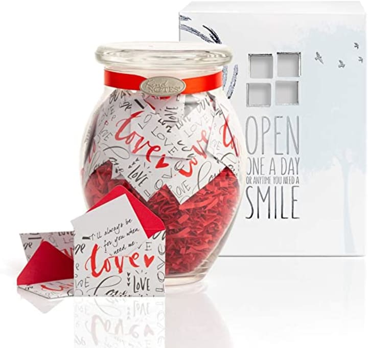 3.) The "Love Note Jar" - This gift is a great way to show your partner just how much you love them, one love note at a time. It comes with 50 pre-written love notes that you can add to throughout the year. You can slip a note into their lunch box, their coat pocket, or even tuck one under their pillow for a sweet surprise.