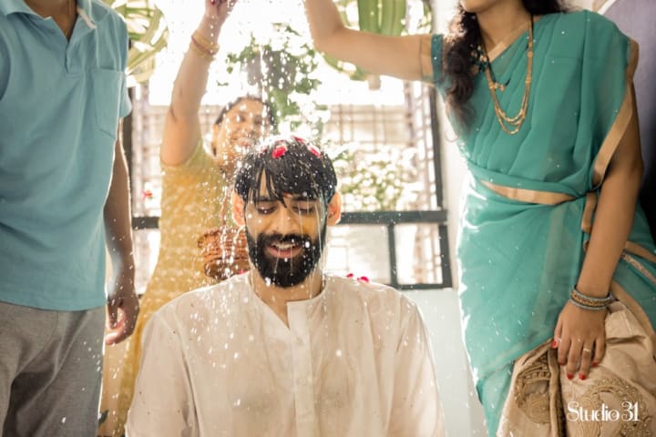 On the wedding day, the bride and groom undergo a holy purification bath with turmeric, sandalwood paste, and aromatic oils, ensuring they start their new journey with positivity.