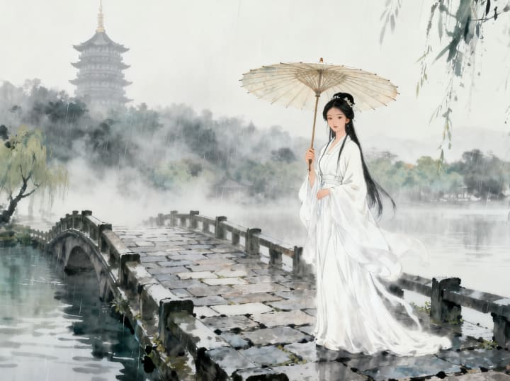 Bai Suzhen and Xu Xian were reunited. Though Xu Xian was mortal and his time was short, they spent their remaining days together in peace. When he passed away, Bai Suzhen did not return to immortality. Instead, she chose to remain near West Lake, becoming a guardian spirit of the waters, protecting lovers and healers.To this day, locals say that on quiet spring evenings, if you walk by West Lake and listen closely, you might hear the soft echo of laughter—two souls, bound by love beyond life and death. And sometimes, a white serpent can be seen gliding through the mist, her eyes full of ancient wisdom and eternal devotion.The Leifeng Pagoda still stands, though now it is a symbol not of imprisonment, but of redemption. And the tale of Bai Suzhen and Xu Xian is told to every child in China—a reminder that true love knows no bounds, not even those between human and spirit, mortal and immortal.This legend has been passed down for generations, inspiring operas, paintings, poems, and films. It teaches that compassion, loyalty, and the courage to love against all odds are the highest virtues. In a world often divided by fear and prejudice, the story of the White Snake shines as a beacon of hope—that understanding and love can bridge even the deepest divides.And so, beneath the willow trees of West Lake, where the lotuses bloom and the water whispers ancient secrets, the spirit of Bai Suzhen lives on—not as a demon, but as a goddess of love, forever remembered in the heart of Chinese folklore.