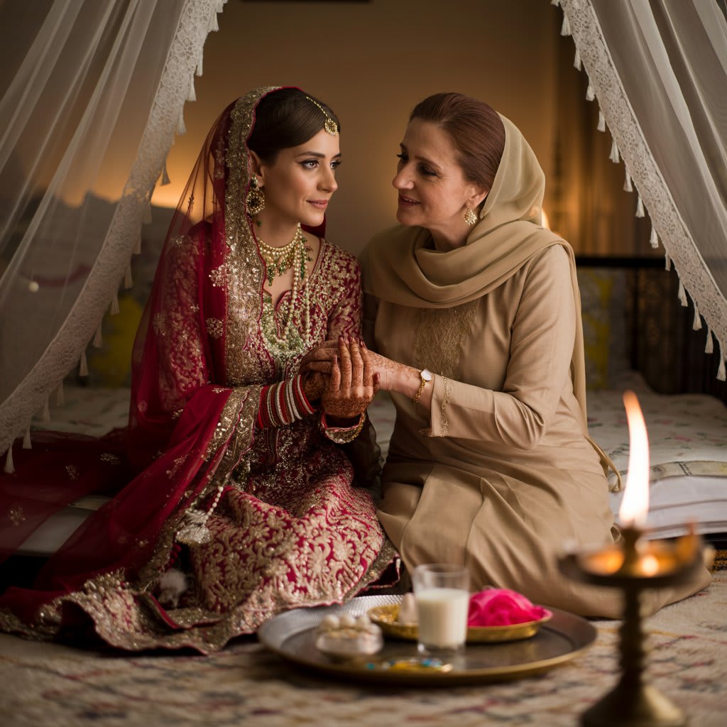 As she looked around the softly decorated room, she heard a gentle knock on the door. Her heart skipped. She stood up quickly, fixing her dupatta, thinking maybe it was her husband. But instead, it was her mother-in-law—her new mother.