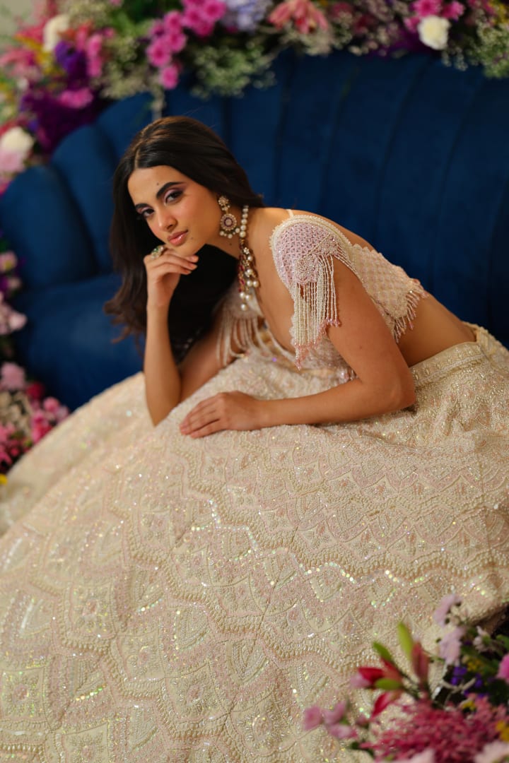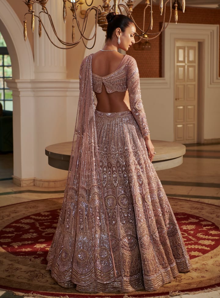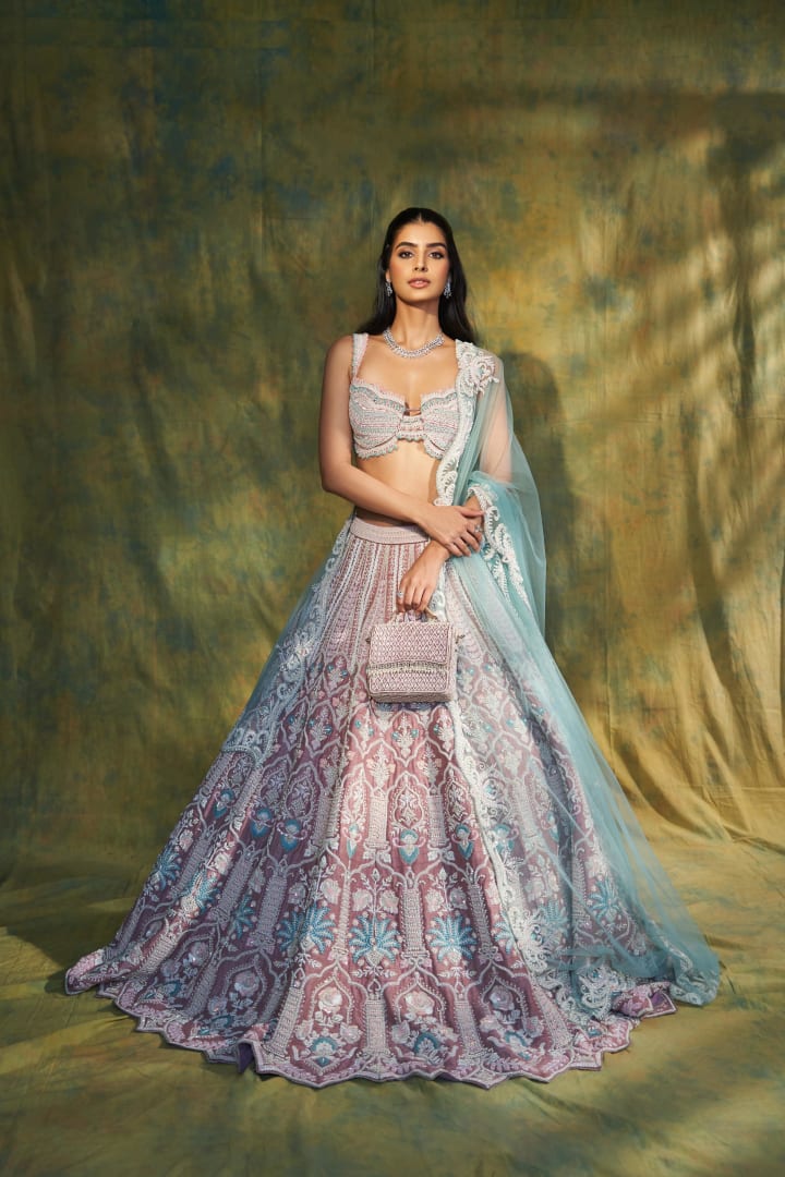 Trail lehengas are heavily influenced by bridal couture and high fashion. Featuring a trailing hemline that will follow your movement as you walk, trail lehengas have added drama and photogenic detail that will certainly add a touch of luxury.