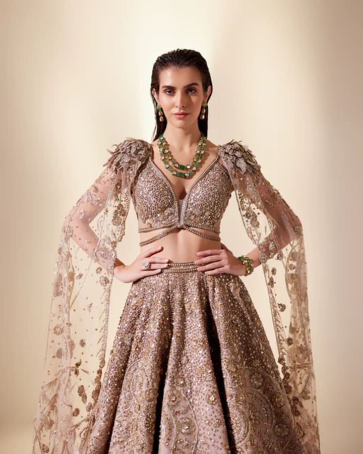 Cape sets lehengas come in metallics, pastels, and vivid jewel tones, and they work wonderfully with embellishments, sequins, threadwork, and mirror work. When shopping for lehenga choli online, I suggest looking for cape sets in either the contemporary category or the designer category—You'll find a piece that is both elegant and fierce!