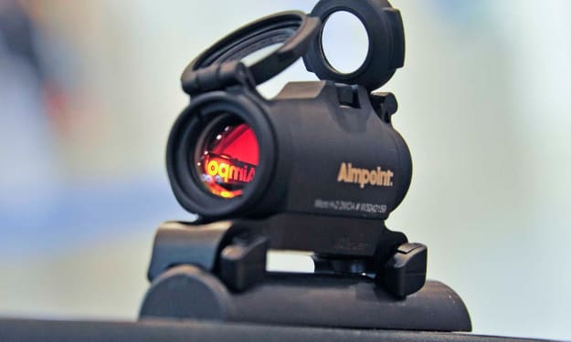 Clear dot, but slight softening on edges. Works well for close defensive targets.