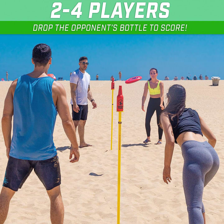 The Tipsy Toss game set comes complete with everything you need to dive into the action-packed gameplay. Inside the portable carrying case, you'll find 2 target poles, 2 bottles, and 1 flying disc. No need to waste time searching for additional equipment or accessories – Tipsy Toss provides it all, ensuring you can start playing right out of the box!
