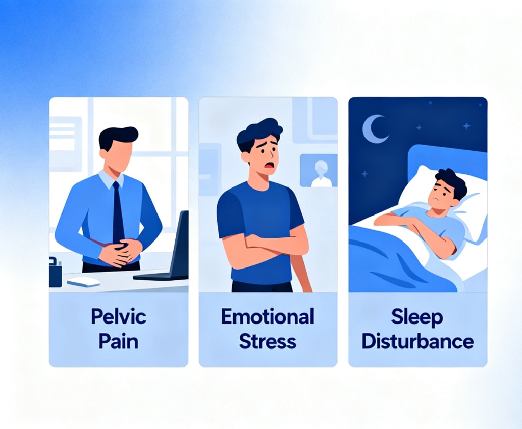 Over time, pelvic pain can lead to fatigue, sleep disturbances, irritability, and reduced productivity, which deeply impacts quality of life.