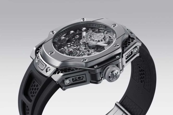 Hublot excels in material fusion and bold aesthetics where tradition meets disruption. The brand’s motto, “Art of Fusion,” reflects its commitment to blending unconventional materials like ceramic, rubber, titanium, and sapphire with classic Swiss watchmaking.