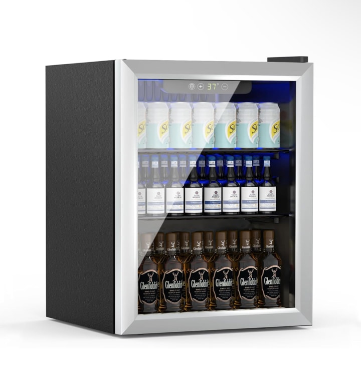 The EUHOMY 48-Can Beverage Refrigerator is the epitome of compact efficiency. Despite its modest size, this little fridge can hold up to 48 cans—perfect for small spaces like dorm rooms, offices, or home bars. Its adjustable shelves provide the flexibility to store not only cans but also bottles of all shapes and sizes. The blue LED lighting adds a modern, cool flair, while the glass door allows you to see exactly what’s inside with just a glance. It’s perfect for those who want to add a splash of style while keeping their favorite drinks cold and accessible. The EUHOMY fridge is not just a piece of equipment; it’s an accessory that elevates the space it occupies.