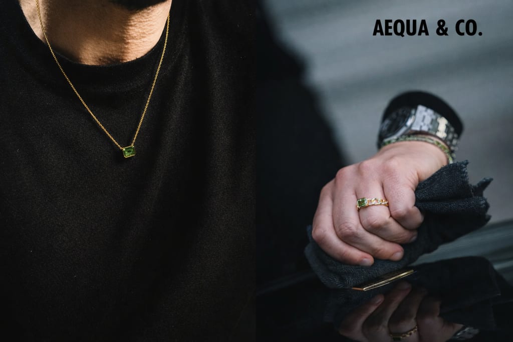 A man’s gemstone bracelet found its way onto his wrist - cool blue stones, precise and composed. It didn’t demand attention. It clarified it. When his hand rested on the table, the bracelet held its line - calm, balanced, quietly assured.