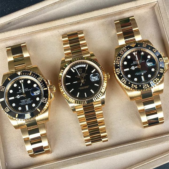 The collection includes a Rolex Day-Date II, valued at close to £24,000 pounds, a Rolex Yacht-Master II valued at near £50,000 pounds, and a Rolex Sky-Dweller with a price tag of £26,500 pounds.