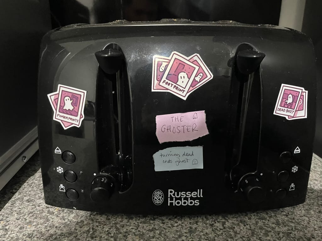 - Name every appliance in your kitchen. Extra points if you stick Googly eyes on it. I have a toaster doused in ghoulish stickers that I and Ben have named the Ghoster. Turns dead into a ghost instead of bread into toast.