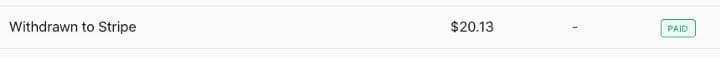 Here’s the screen capture showing the payment of $20.13 for my bonuses. They paid the tip as a separate transaction.