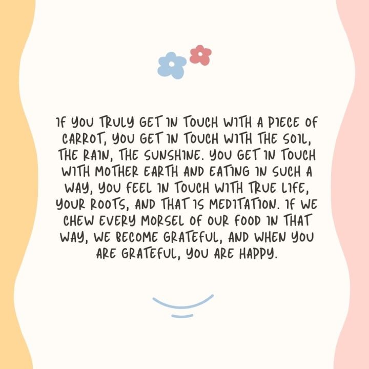 9. “When you look at the sun during your walking meditation, the mindfulness of the body helps you to see that the sun is in you; without the sun, there is no life at all, and suddenly you get in touch with the sun in a different way.”