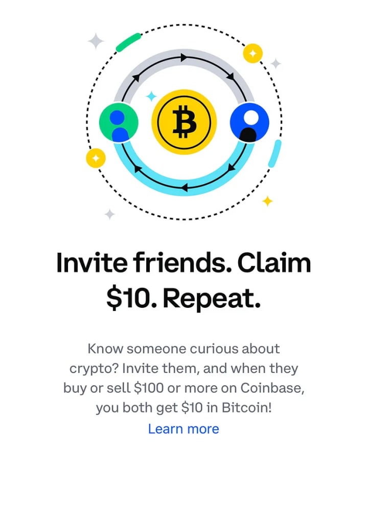 Affiliate program: Make $10 infinitely per each friend you refer who buys or sells $100 worth of cryptocurrency. Once they do, you both get $10 in Bitcoin.