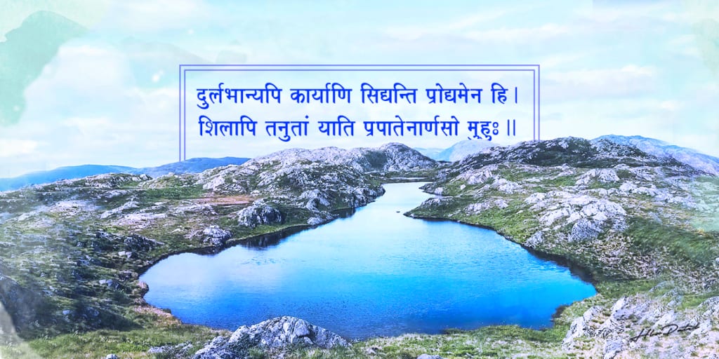 दुर्लभान्यपि कार्याणि सिद्यन्ति प्रोद्यमेन हि। शिलापि तनुतां याति प्रपातेनार्णसो मुहुः॥