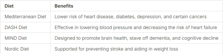The DASH diet and the MIND diet are also good for your health. They help with weight control and make you feel better overall.