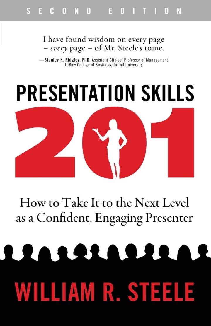 "Presentation Skills 201" by William R. Steele builds upon foundational presentation skills and offers advanced techniques for engaging, influencing, and connecting with your audience on a deeper level. It covers topics such as using visual aids, handling Q&A sessions, and incorporating storytelling to elevate your presentations.