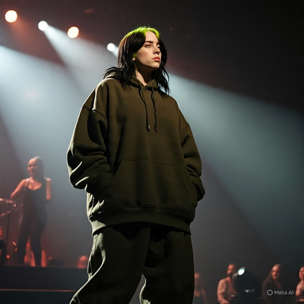 But what made Billie stand out wasn’t just her voice—it was her authenticity. She wasn’t trying to look or sound like anyone else. At just 14, she wore baggy clothes, wrote dark and emotional lyrics, and spoke openly about struggles most teens hid. For many listeners, she felt like a friend who understood them.