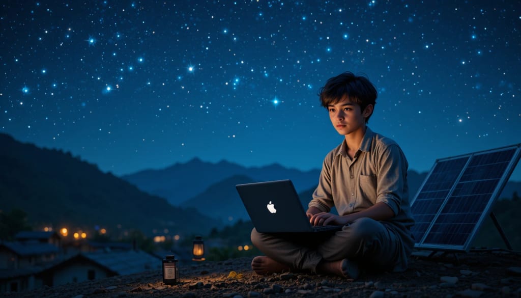 Slowly, he built a portfolio. His skills improved. He bought a secondhand laptop with his earnings, then a solar panel to keep it charged. He worked from the roof of his house, under the open sky. When the village kids teased him for “sitting with a machine like a madman,” he smiled and kept typing.