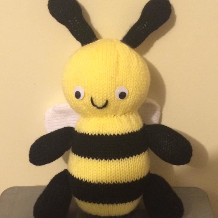 Now the biggest toy that I have ever knitted has been my bumble bee.