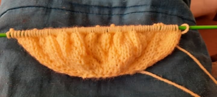 In 40 minutes I knit from 10 Stitches up to 80 Stitches, although judging from the size so far I may have to go up to 200 Stitches and possibly even more depending.