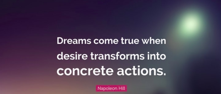 Napolean Hill once said, "Dreams come true when desire transforms into concrete actions".