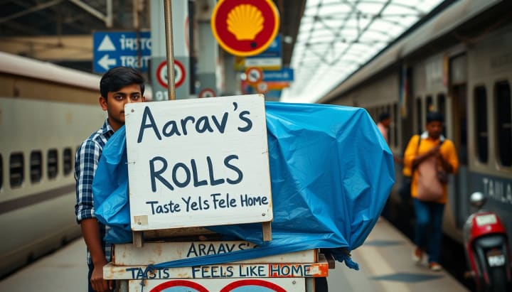 Instead, he added a blue plastic sheet for shelter. He wrote a hand-painted sign: Aarav’s Rolls Taste that Feels Like Home.