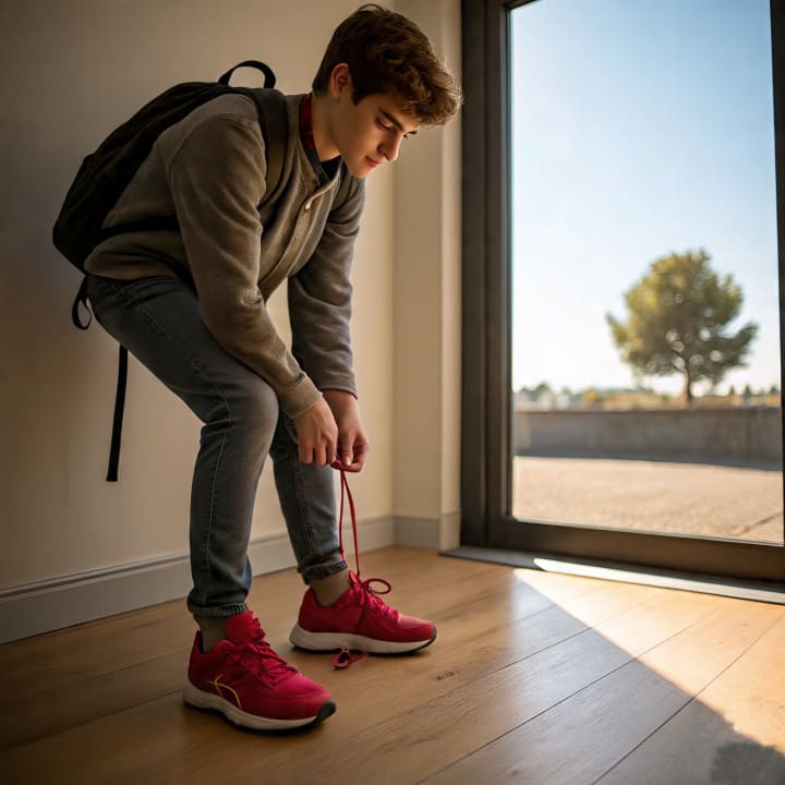 Putting on my shoes and stepping outside for a run.