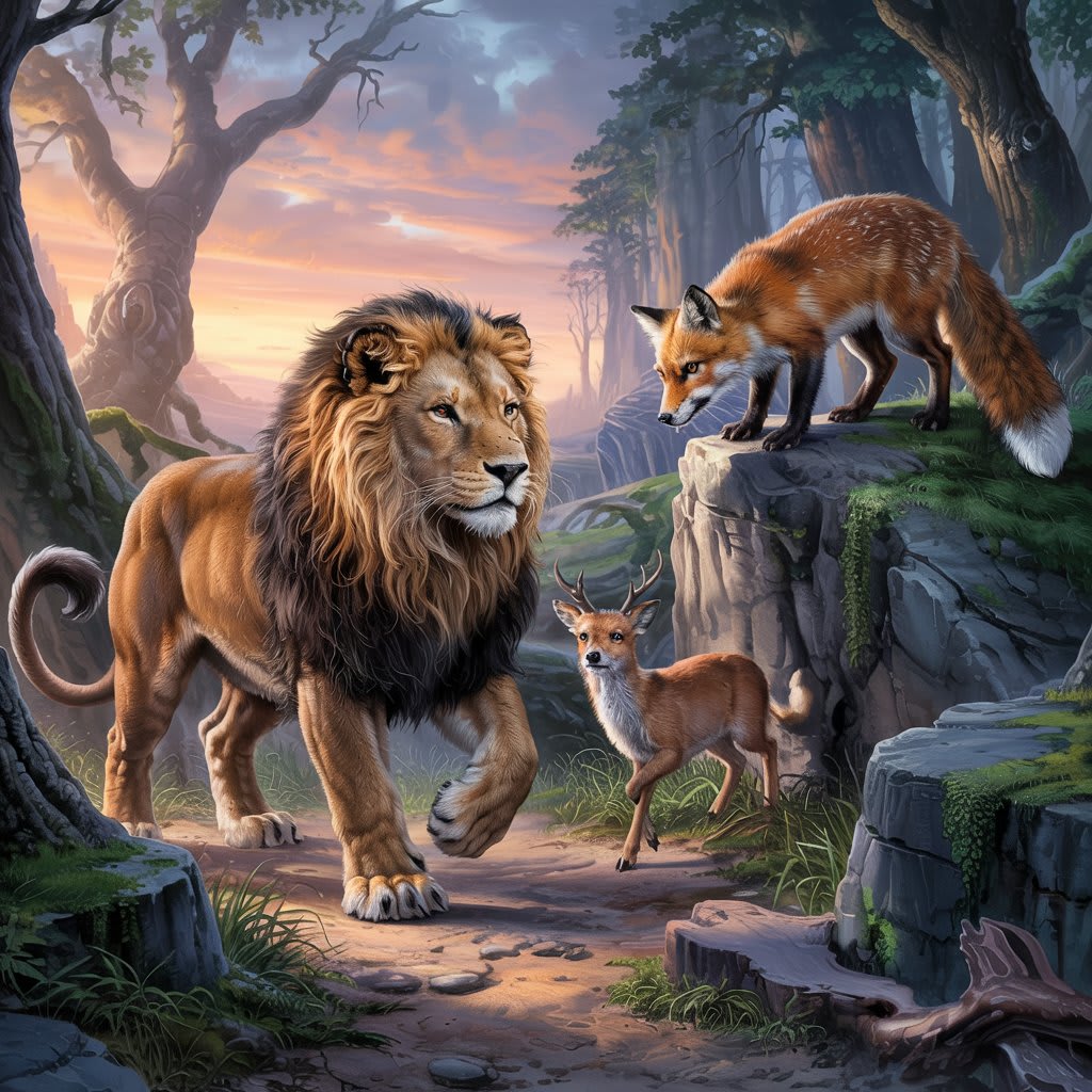 “Sire,” said the jackal, “the newcomer, the fox—she’s been tricking the others. She’s outwitted the hyenas, stole honey from the bees without a single sting, and even convinced the elephants to share their watering hole.”