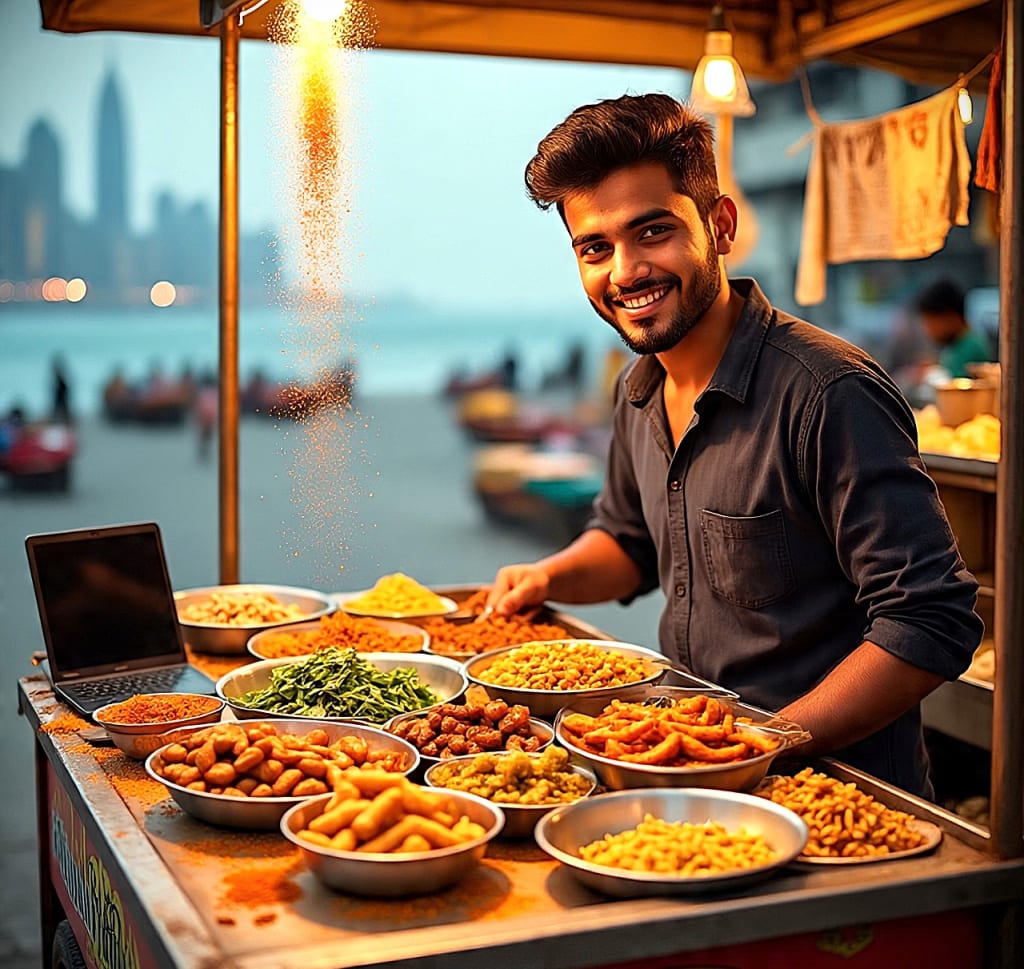 Her words planted a seed in Raj’s mind. He had never even owned a smartphone, but he borrowed one from a neighbor and learned about Swiggy and Zomato. With whatever little money he had saved, he bought a simple phone and listed his food online. But Raj wasn’t satisfied with just that. “Why only sell food?” he thought. “People love stories as much as they love spice.”