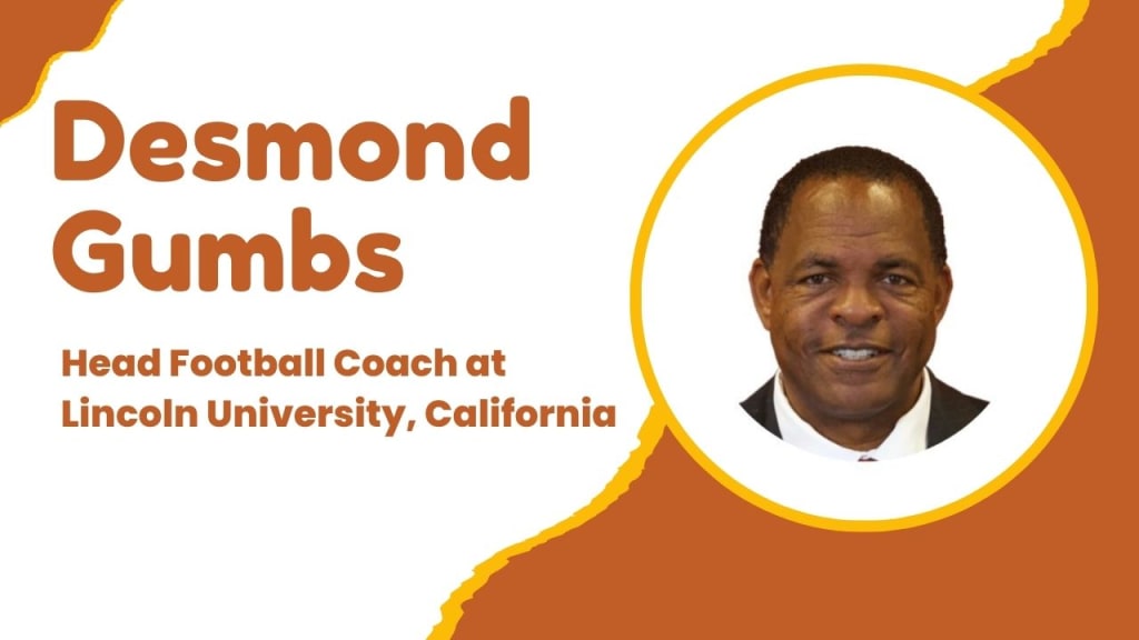 Desmond Gumbs is the head football coach at Lincoln University in California. He is dedicated to making the football team even better and has a lot of experience. He leads with passion, shaping players into champions.