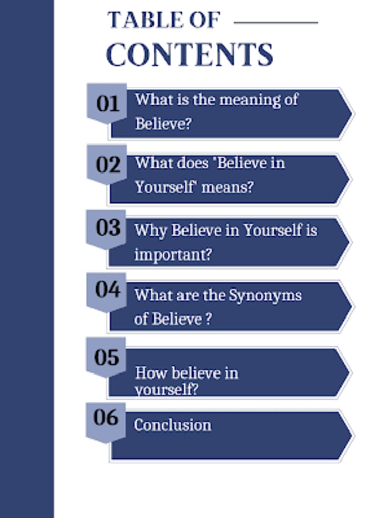 There are many synonyms of the word believe, among them faith, trust, confidence, conviction, reliance are notable. The words credence, motion, troth, tenet, paricularism are all synonyms of believe, the rest depends on the context in which they are used. And all these synonyms make the word faith very important in our life. For example, if you trust someone or someone reassure you, you will easily develop believe in him, in this case your mind may not ask you any questions, and even if you are dependent on someone, you may develop faith in him. I discuss these because all of these factors influence how strong or shaky your self-belief is.