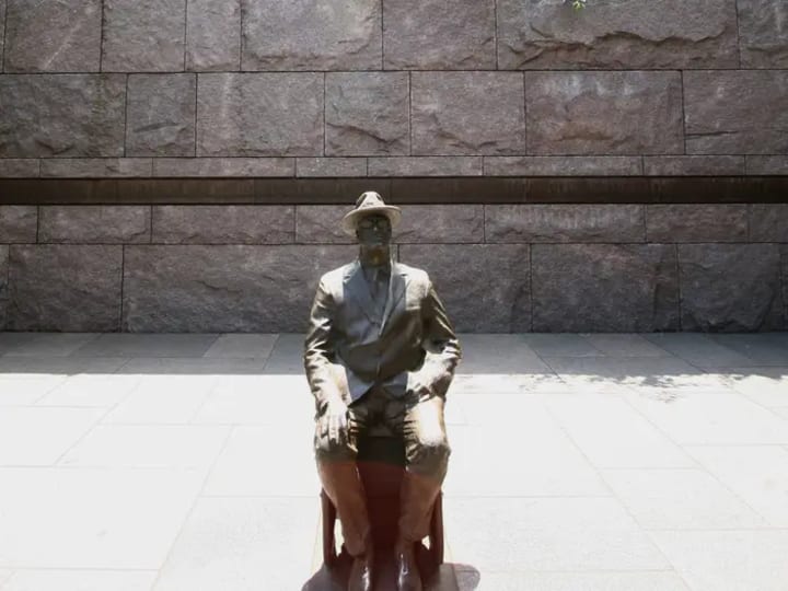 In 2001, a statue of Roosevelt in his wheelchair was unveiled in Washington, D.C. This was an image that Roosevelt had tried to hide from the public for a long time. On the wall behind the statue, Eleanor Roosevelt's words about her disabled husband are written.