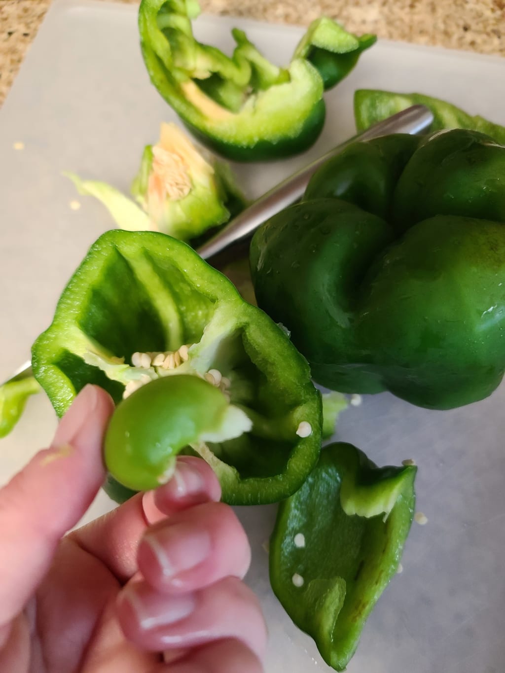 See this pepper? Here is what I love about this pepper. Inside of it was another pepper growing. But, I couldn't possibly see that from the outside. The best I could do is pick it up, make sure it didn't have spots, make sure it was grown according to my standards (organic, etc.), make sure it was bagged appropriately to transport it to my home and then wash it before I cut into it. That's all.