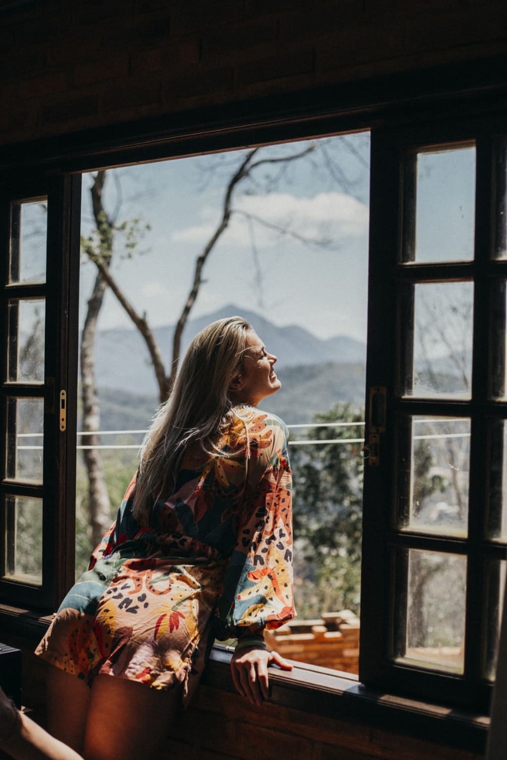 See the girl in the picture leaning out of an open window taking in the mountain air? I do that. I open the window and breathe in a great lungful of fresh air. I take time to look at nature around me; I take time to really listen to the birds. As a keen bird-watcher, I try and identify them.