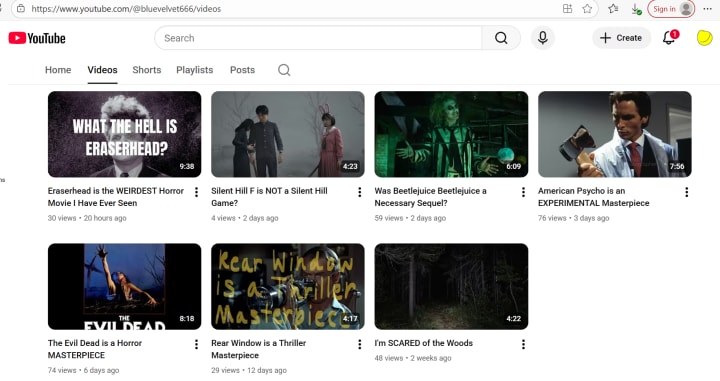 And I also have started to edit my thumbnails for my videos too. I don't like how I use boring images for my videos, and I know I need to stand out on this platform somehow. When it comes to YouTube, if you want someone to click on your videos, you gotta have something that will catch anyone's attention. Since I focus on the horror genre, I know I need some eye catching material for people to check out my videos.