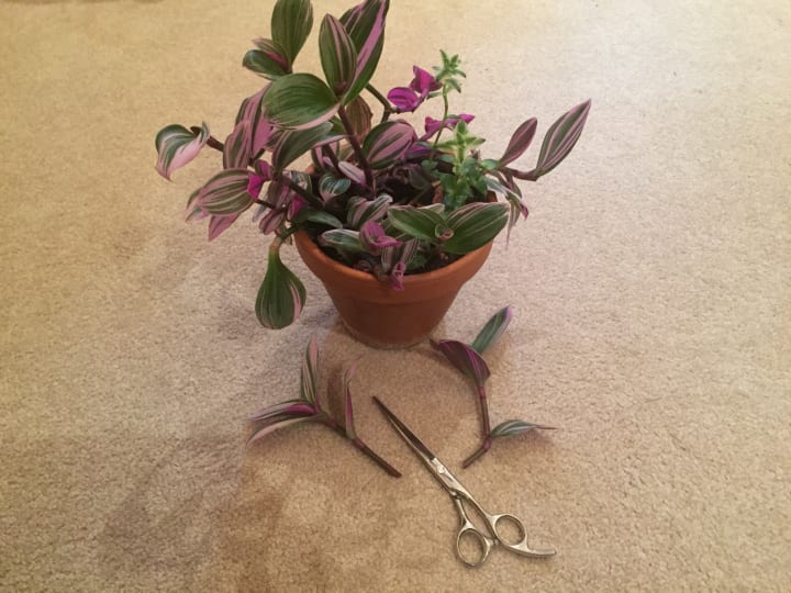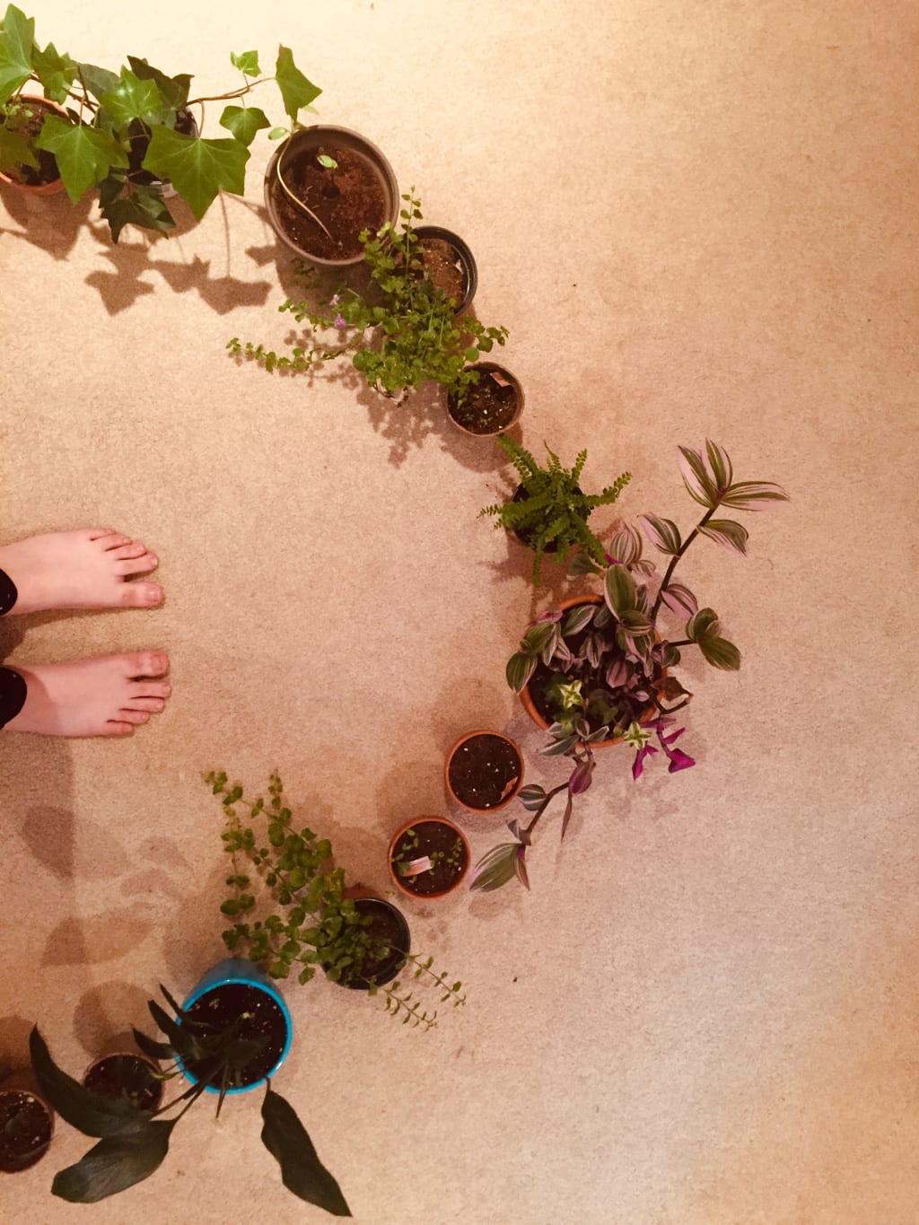 I did not create these plants, but, with my scissors, I help create their futures, and the paths through the dirt and air that they will take. I created their environment, and allowed them to create mine. I created their stories, and how their stories affected me, my mother, our home. I created a new narrative much like we create our own paths, in partnership with the ways life goes outside of our control. I did not plan for my Papa to die this year. None of us planned to be locked inside since 2020. But didn't we all find another small way to smile today?