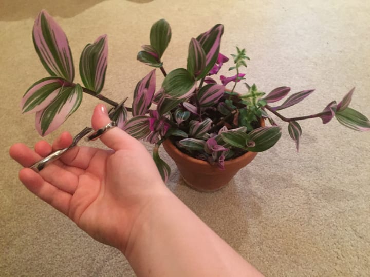 Cuttings. She taught me that day the importance of them. I cried as I made the first cut, scissors meeting the life I'd been hoarding. By then I had more plants than room for them, pot saucers replaced by our dining dishes, bookcases turned greenhouses. I sat down that day and promised to learn how to care for them, these plants that had collected without much conscious thought, some of them browning, others leggy and overgrown, others root-bound, others all three. For eight long months interspersed with chemo trips, longer hugs, and conversations too painful to have, these plants had gathered: life in the face of death. But nothing had been created...not yet.