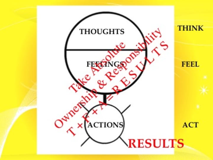 If we understand this simplistic image, then we must take full responsibility and complete ownership for our thoughts, feelings and actions. It’s a very simple formula as less is more and by reducing everything to the ridiculous it becomes second nature.