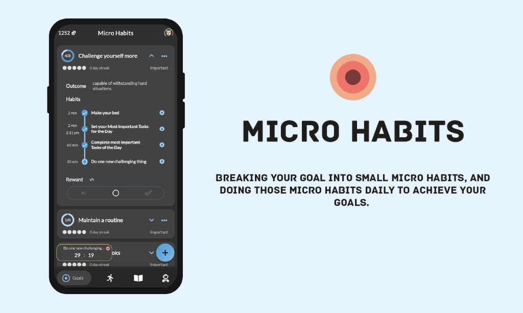 These tools make “Micro Habits” an app which can help you stick to your new habit easily.