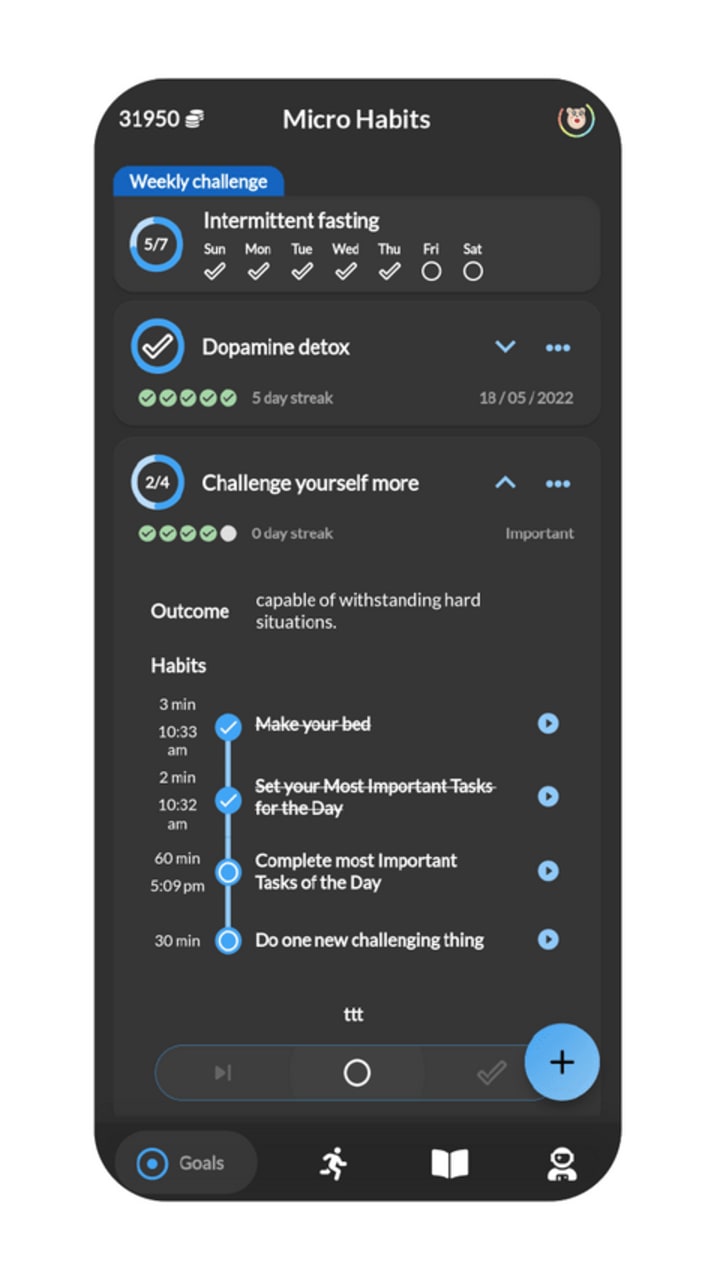 So, I’m a programmer, so I implemented all these tools in one app and named it “Micro Habits”