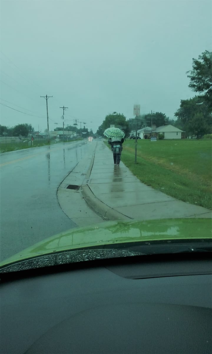 Just recently, it was raining as I was driving around in my car, Kiwi Sun, to get out of the house. Quarantined with my parents was making me stir crazy. I saw a man walking in the rain. I instinctively reached for my extra umbrella to give to him. I pulled over safely. (Very few were out and about due to the state-mandated orders to stay home in the most unprecedented time in history -- the Covid19 / Coronavirus pandemic.) I rolled down my window as I smiled at the young man. Then it hit me. He ran toward me. Then it hit him.