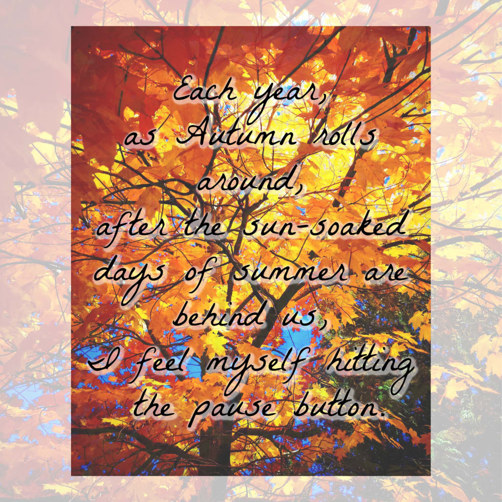 As a grownup, (apparently, I am one?), I have started to think of Autumn as a pause button. Sandwiched between the blistering, thought-crushing heat of summer, and the snuggly, lazy days of winter is this perfect season. Autumn – when it finally cools down enough to put a thought or two together, and it’s not yet cold enough to freeze your nose, toes, and brain cells.