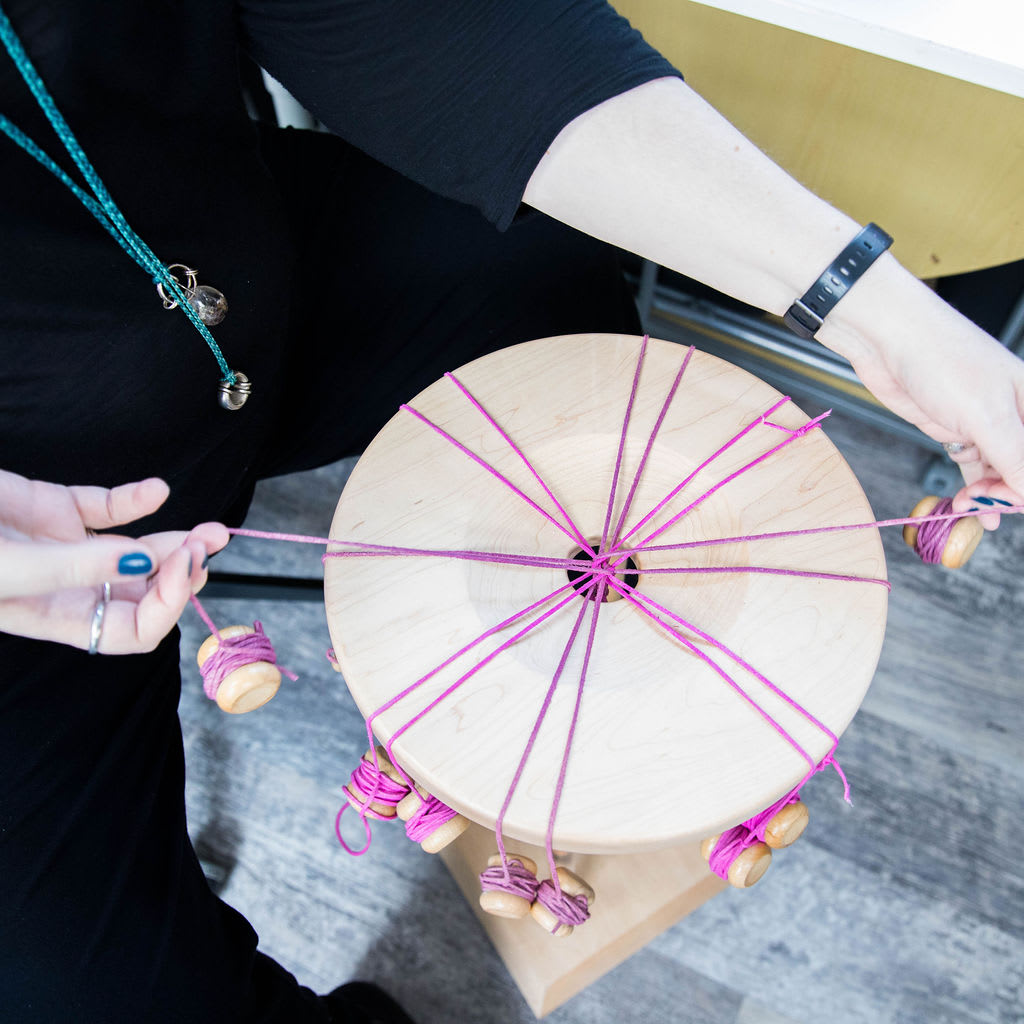 As a jeweller – some ideas of tasks I find particularly valuable for mindful attention are: - filing or sanding objects, polishing, piercing (sawing / cutting out shapes), hammer forming metals. These tasks are all quite repetitive, and if you don’t focus completely on the metal (or wax, stone or other material) and its feel, markings and sounds, you will easily go wrong and create the wrong marks, shaping or effect, sometimes irreversibly changing your piece. I also include in my jewellery practice some non metalwork based techniques that I incorporate into my designs, and my teaching, including stitched (off loom) bead weaving, and Kumihimo which is the art of Japanese braiding. These are also very suitable for practicing mindfulness, particularly involving a lot of repetition – as in the braiding, which I am doing in the photo above and use to make custom cords for my jewellery pieces.