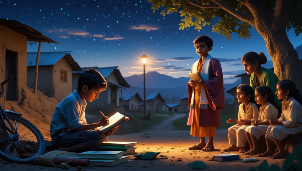Determinedly, Rohan began reading under the street lights after work until dawn most times. His mother had been watching him with admiration over his tireless work. She started borrowing books from neighbors and sold her only piece of jewelry to obtain a second-hand bicycle for Rohan to ride to night classes in a nearby town.