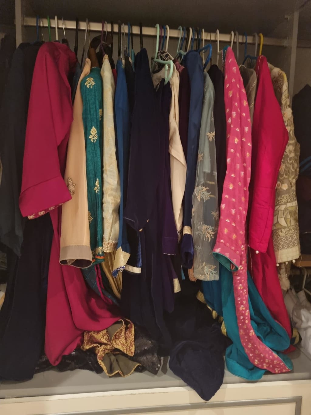 I had trouble giving away my ‘Pakistani clothes’ or ‘Asian Wear’ that usually includes ‘kurta shalwar and dupatta (Shirt, trouser and a scarf)’, but may also include dresses like ‘ghararas, lehngas, or saree’. As this type of clothing is not common in the UK, there are no charity shops or donation points where a person can donate these clothes. Since there was no apparent use out of my used Pakistani clothes, there were less frequent wardrobe cleanings, and clothes taken out as a result of these cleanings were being thrown away. But the tradition of gifting hand-me-downs to the needy, that Pakistani girls inherit from their mother was slowly dying.