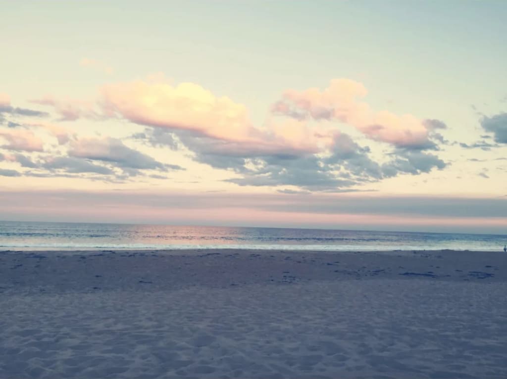 At first, we would walk along on cool, wet sands, talk in careful tones about casual things. We’d get coffee at the beachside shop, we’d people watch and dog watch, we’d get fish n’ chips and feed the chips to aggressive, yet endearing, seagulls. We explored rocks at low tide and looked for crabs in the crevices. I found a gold ring one day—lucky, and it felt weirdly fated. Sunset always caught us early, magnificent pink clouds a backdrop for pelicans on wing. All the while, my fallen dream hung around me like a fog.