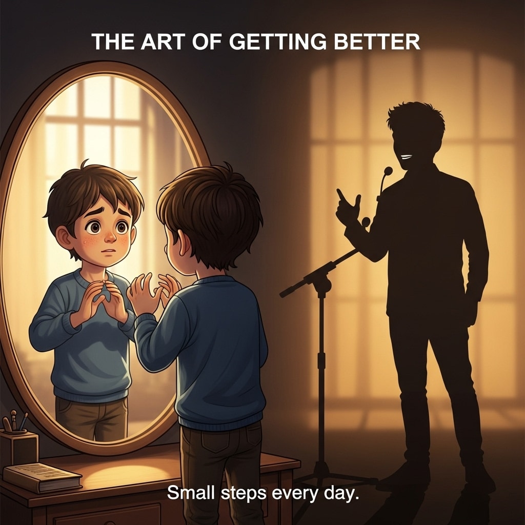 The next morning, Ayan made a decision. He would practice speaking — even if he was terrible at it. He stood in front of the mirror and spoke for two minutes. The next day, three minutes. Then five. He practiced words, sentences, expressions, and confidence.