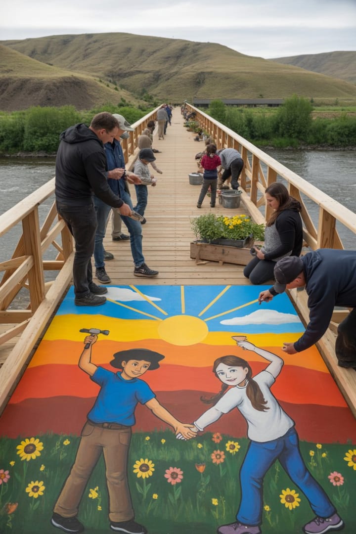 Volunteers from both sides of the river came out to make it happen. They worked weekends, hammering nails, planting flowers, and designing pathways. Local artists painted a stunning mural on the bridge’s midpoint, showing Willow Creek’s spirit—people holding hands under the sun. Benches were placed for folks to sit, chat, or watch the river flow.